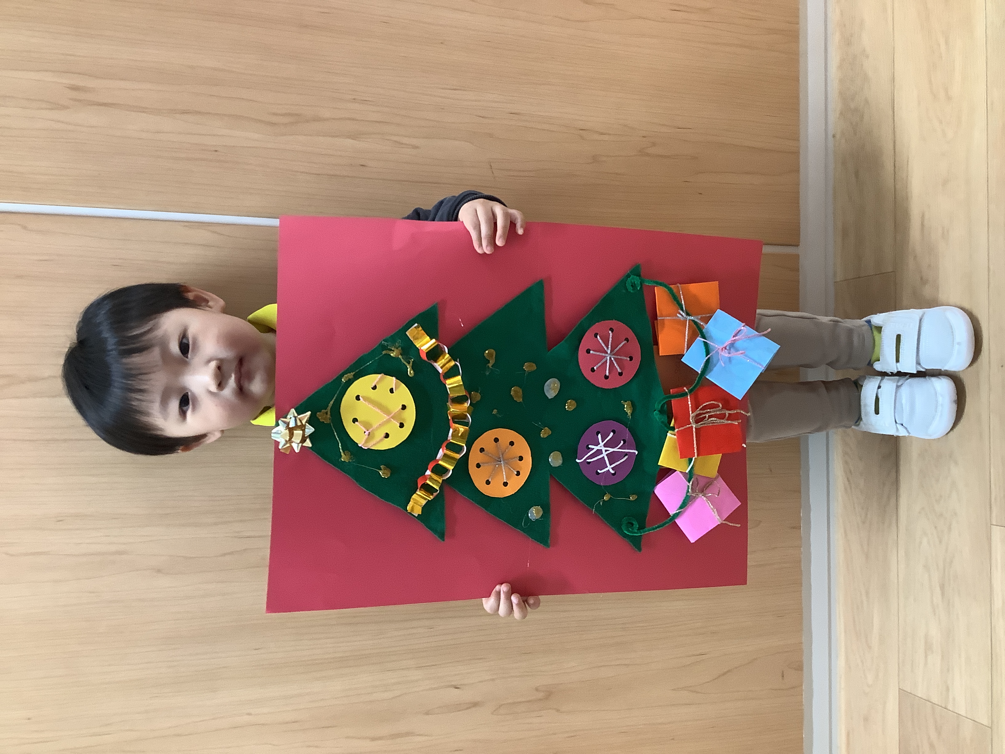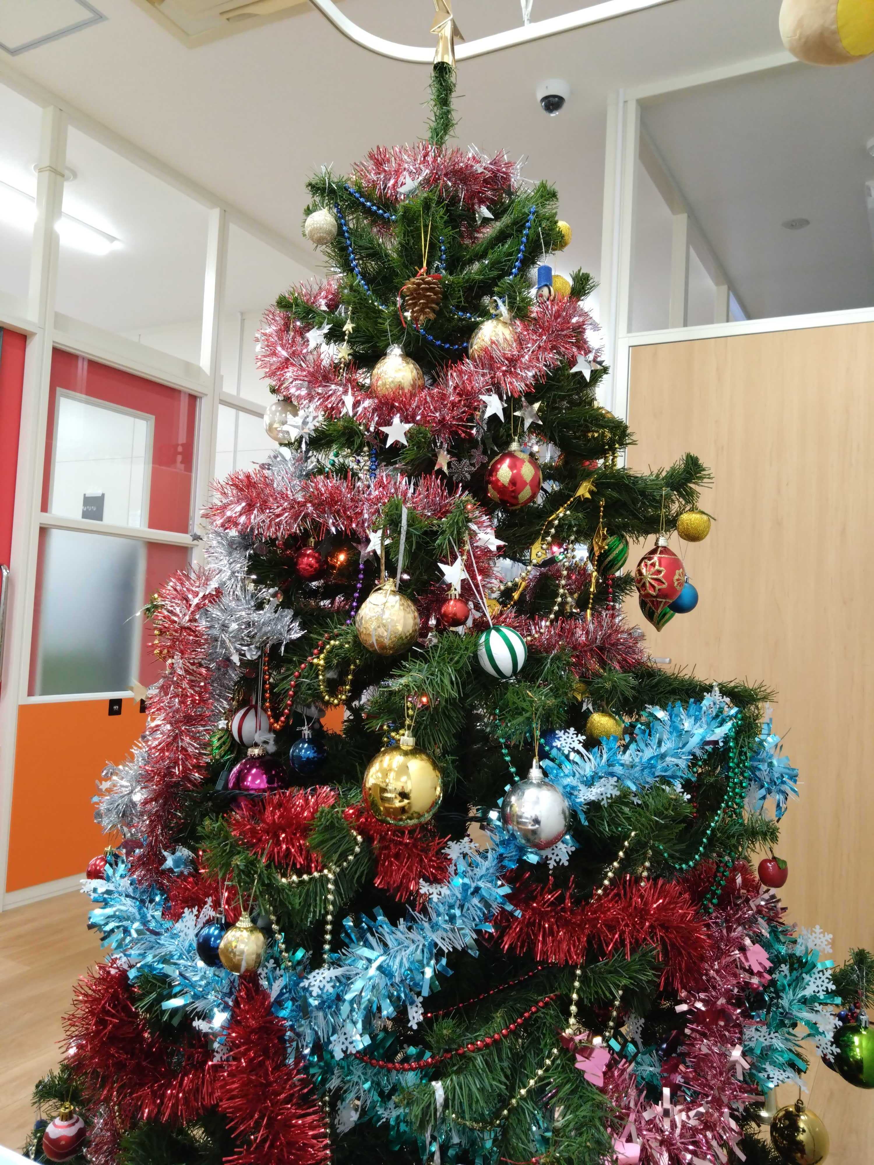 みんなで飾り付けたクリスマスツリーは教室の近くに置いてあります!