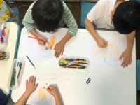 子どもたちと先生の投票によって2つのデザインが選ばれ、そのデザインが今年のハロウィンパーティーのかぼちゃのデザインになります!