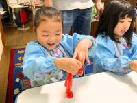 子どもたちは、自分でスライムの色を選び、さまざまな形のモンスターを作っていましたよ!
