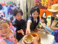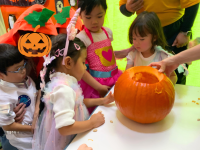We did pumpkin carving with the Jack-o'-Lanterns designed by the children, and at the end of the party, we went Trick-or-Treating in the park!🍭