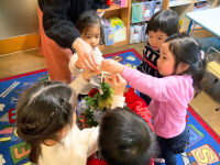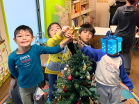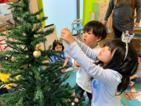 プリスクールの子どもたちが、クリスマスツリーの飾り付けをしました!🎄🎁