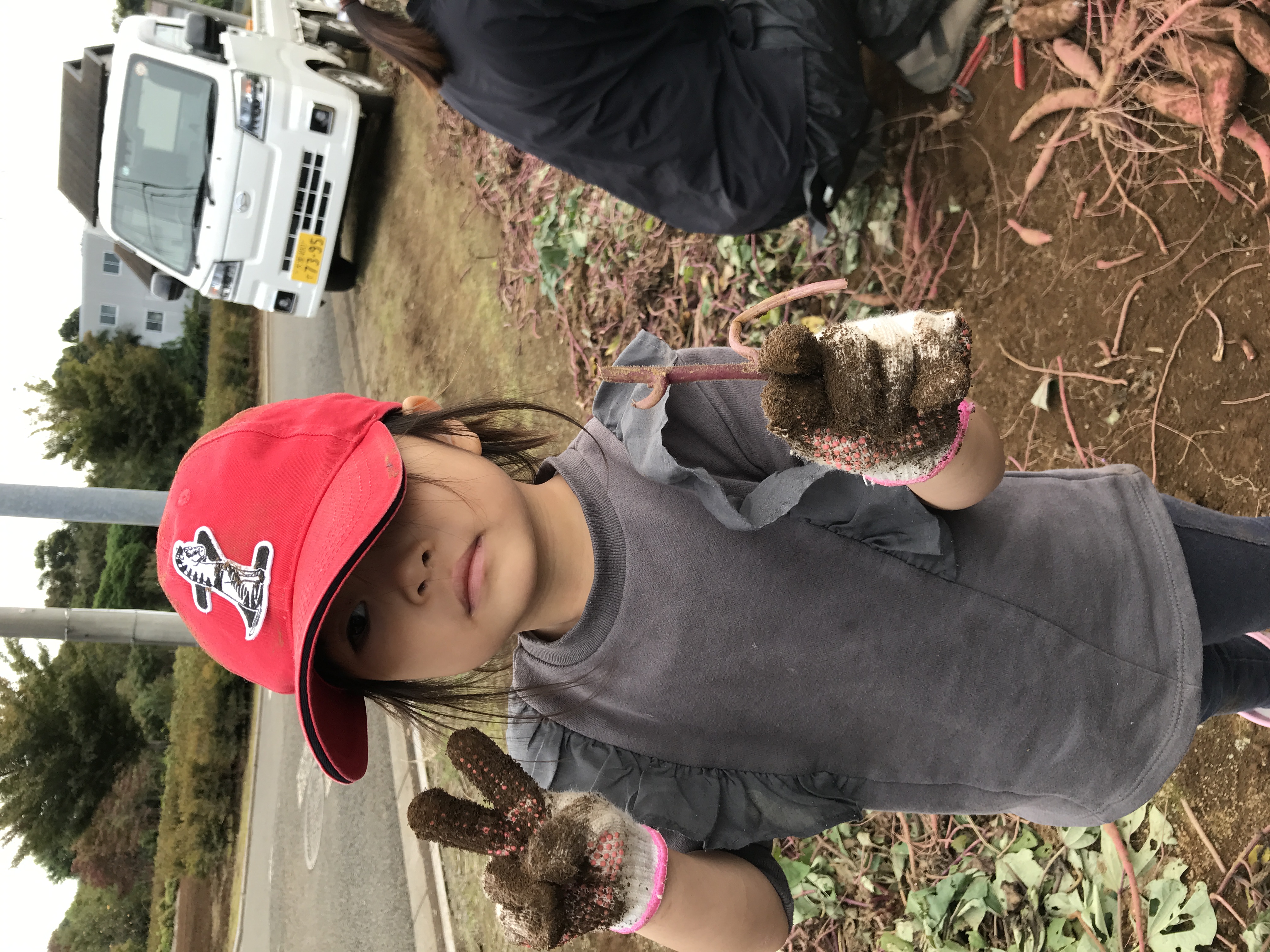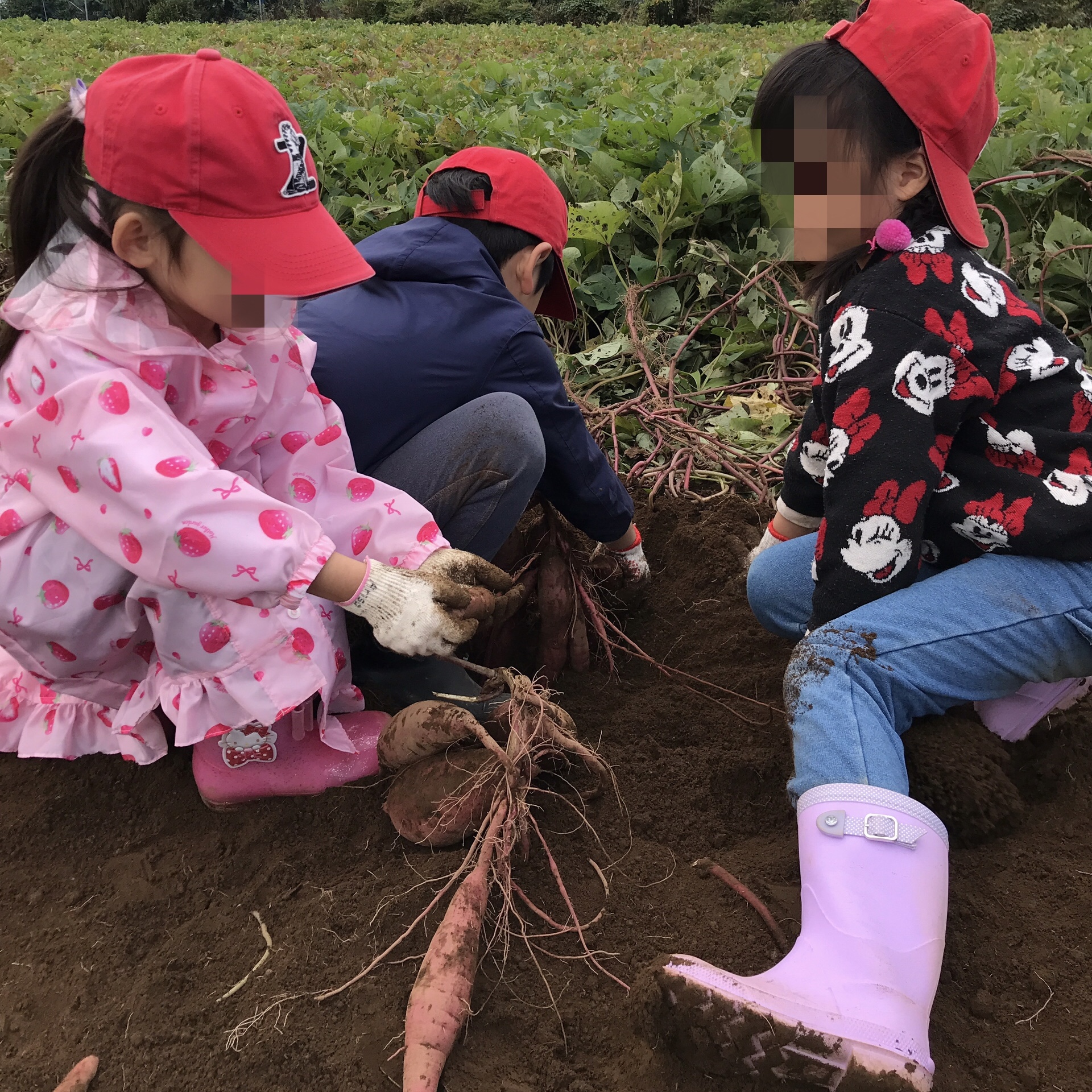 大きな畑で力を合わせてお芋掘り!100本以上のサツマイモを持って帰ってきました。