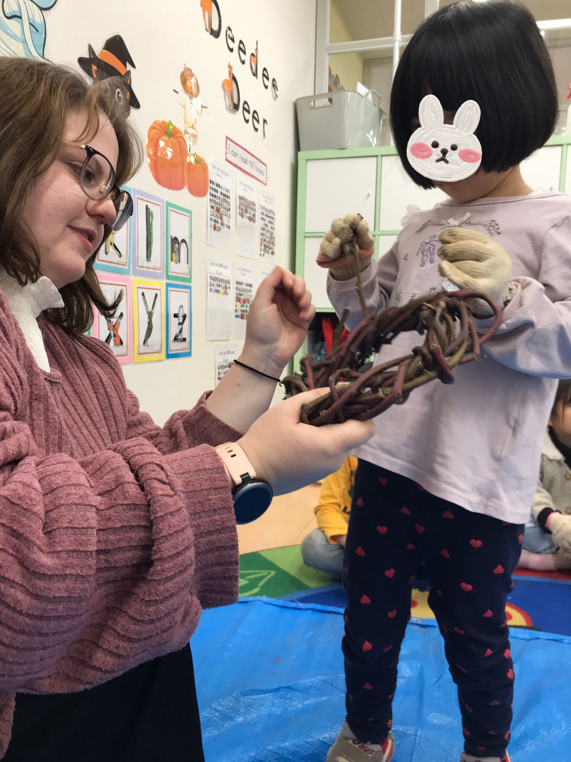 翌日にはツタを使ってクリスマスリース作りを体験しました。