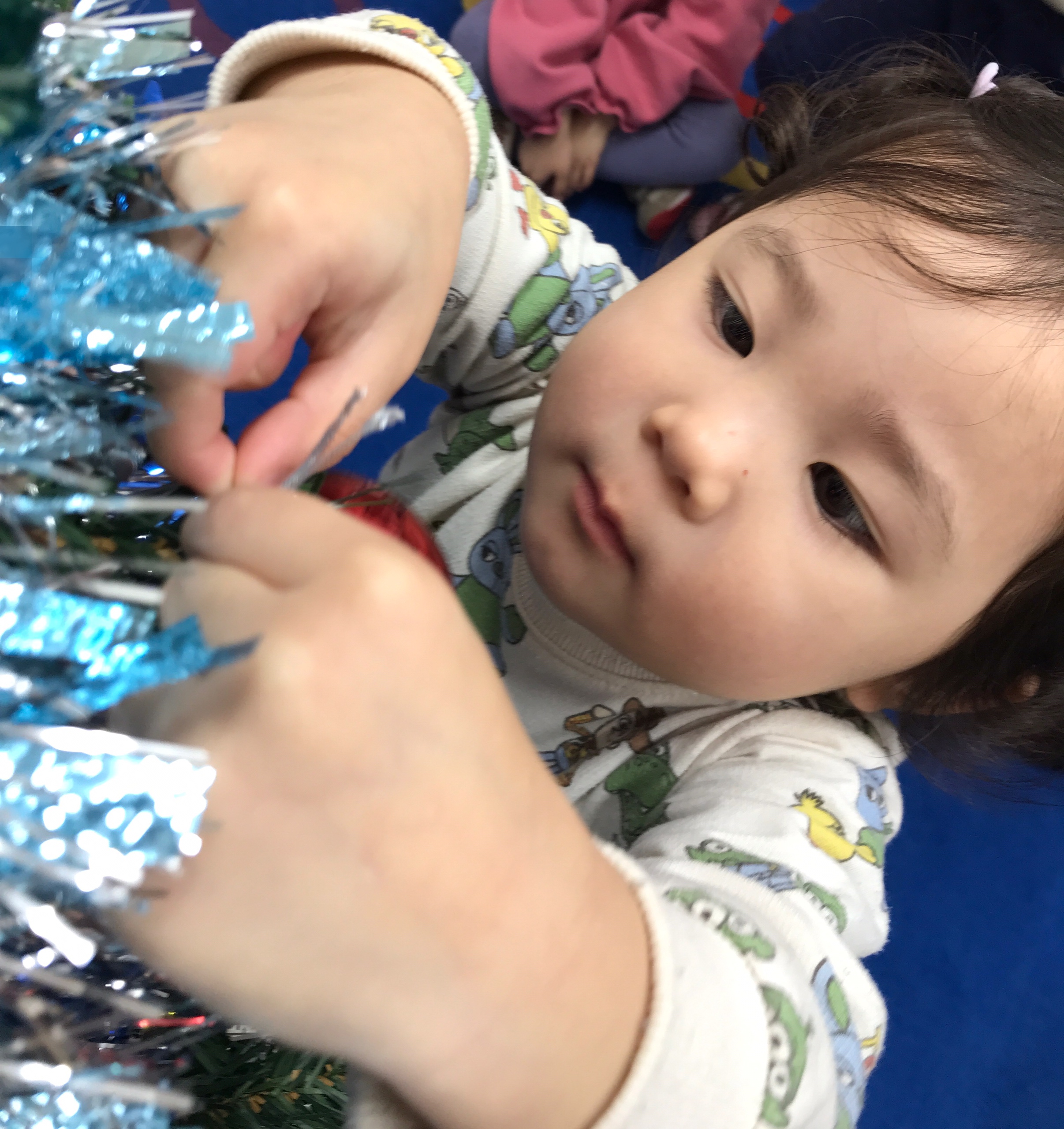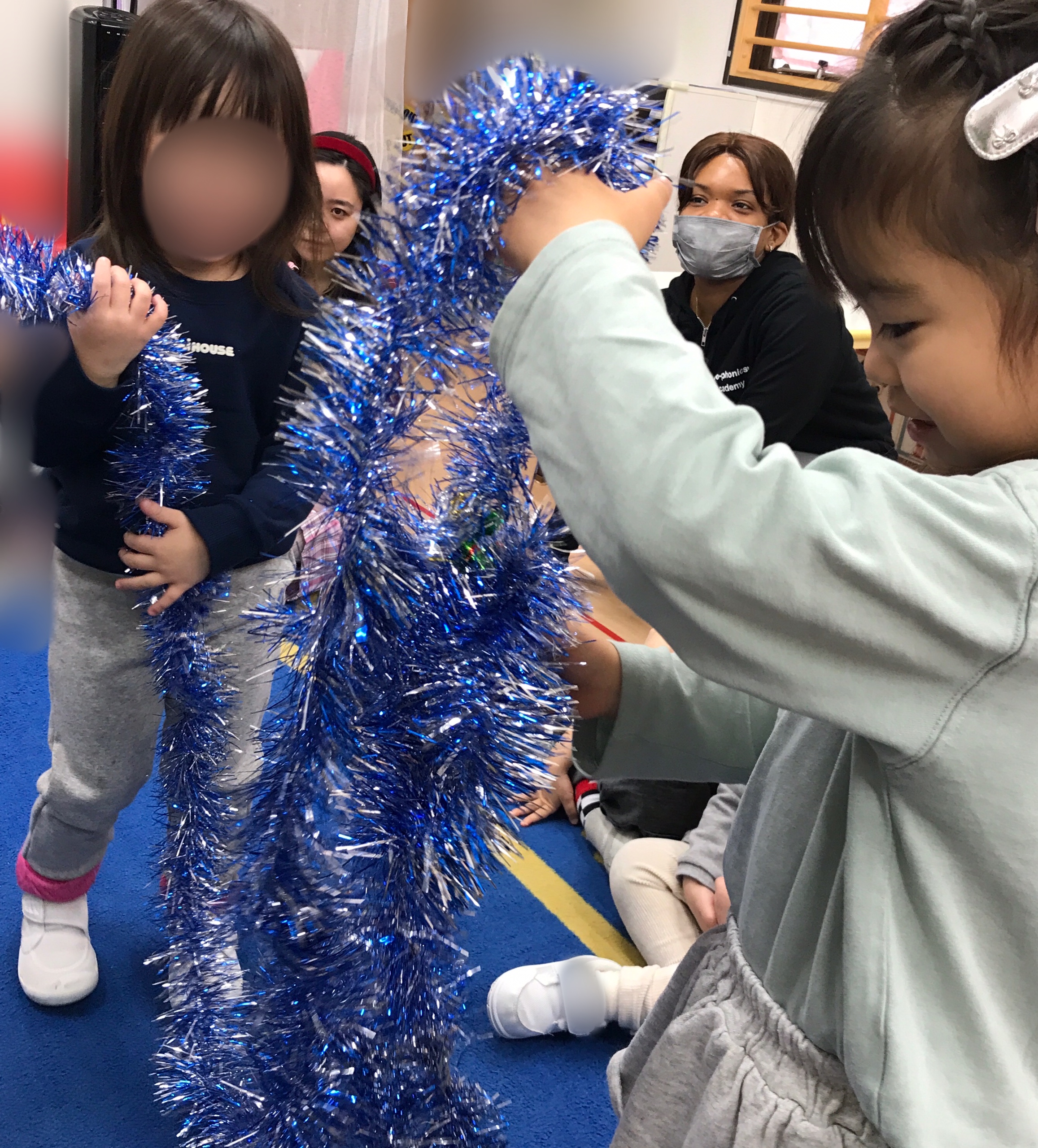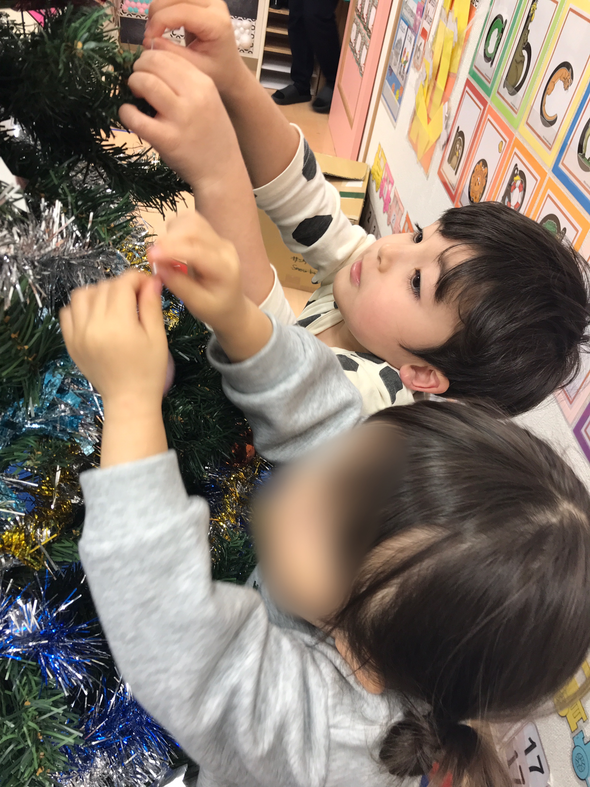子ども達が「もっと高いところに飾りたい!」という気持ちいっぱいで、背伸びをしたり、工夫しながら一生懸命オーナメントを飾っていました。