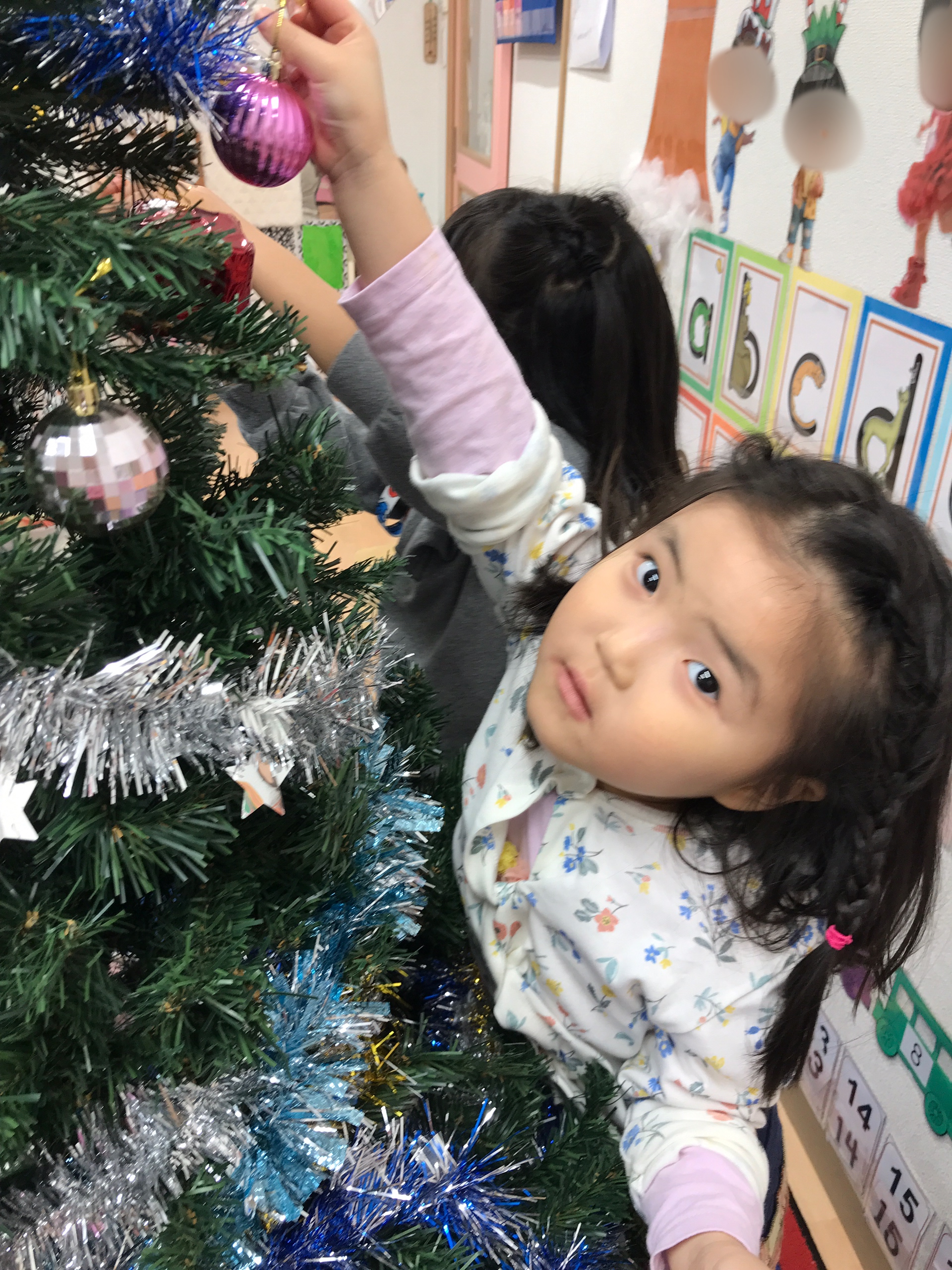 先日インターナショナルプリスクールの全クラスでクリスマスツリーのデコレーションをしました🎄