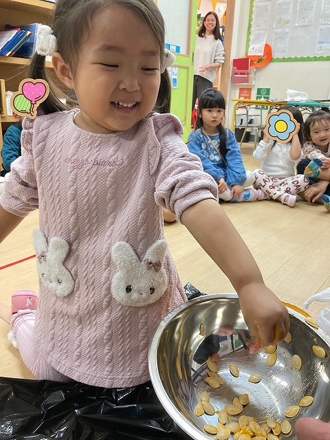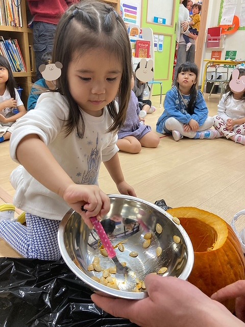 DDクラス(4-6歳)と皆で集まりpumpkin curvingをし、