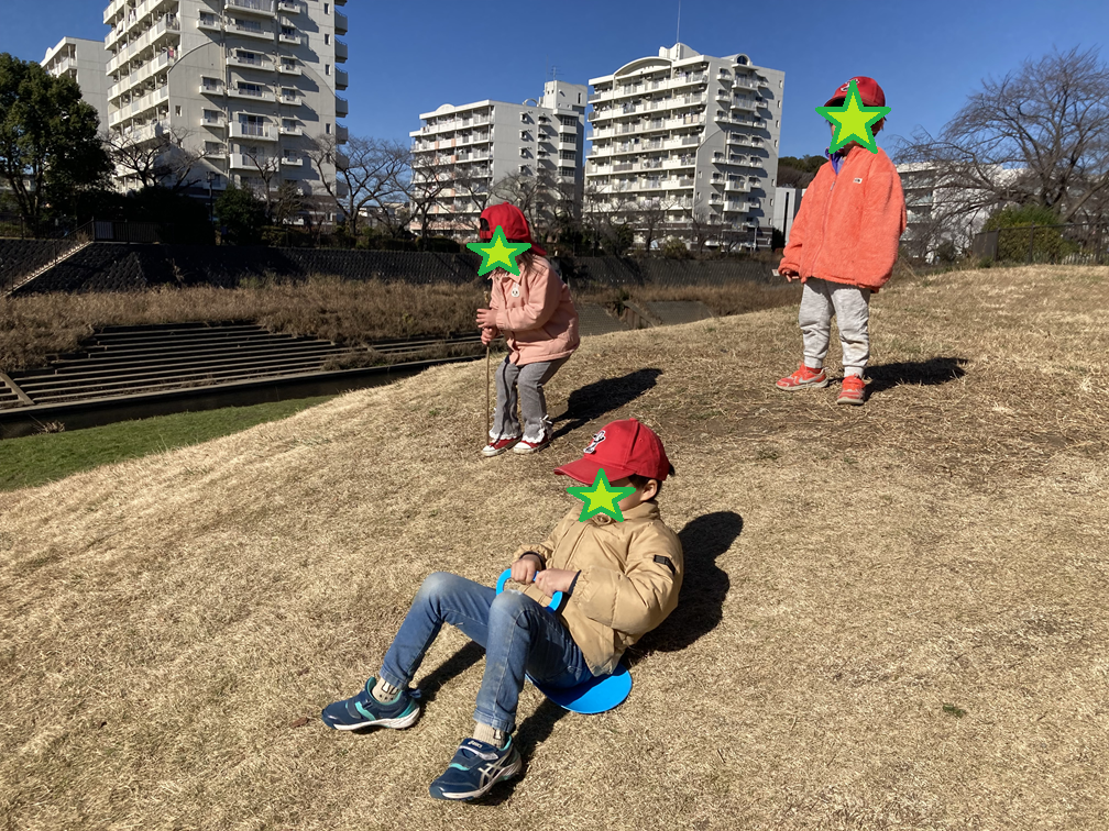 新年も明けて戸塚校では早々に長期休暇中のお預かりサービスがございました!外遊びの際はいつもインターで行く公園ではなく少し足を延ばして川沿いの公園でソリ遊びなどで楽しみました!